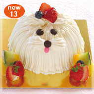 白いスポンジに生クリームとフルーツをサンド。わんちゃんのお顔に見立てて作りました。