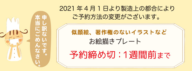 ご予約は2日前にしていただけると助かりますが、ケーキ(4,10,11番)によっては2日前でもお作り出来ない場合がございます。ご了承ください。