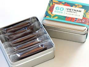 60daysチョコとはベトナムのチョコで、チョコレート製造工程にかかる通常約2年間の期間を60日に短縮し、圧倒的なフレッシュさとフルーティーな香りを楽しむことができる、ピュラトス社が取り組むチョコレートのことなんです。