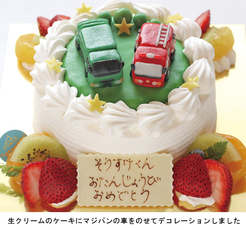 ***マジパン細工のケーキ,複雑な形のケーキをご要望の場合はご予約が1週間前に完了していることを条件に作っています。