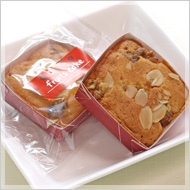 バター生地にラム酒で漬け込んだフルーツ、ナッツを合わせて焼き上げました。