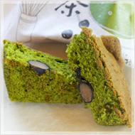 ふわっとしたマドレーヌ生地に香り高い抹茶と黒豆を入れて焼き上げました。