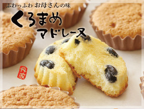 ボリューム感のある昔ながらのふわっふわマドレーヌに、黒豆を入れました。
