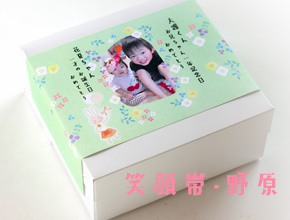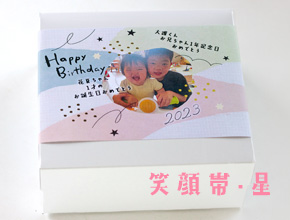 *笑顔帯のお誕生日タイプもつくりました。お写真、メッセージはオリジナルでお入れします。